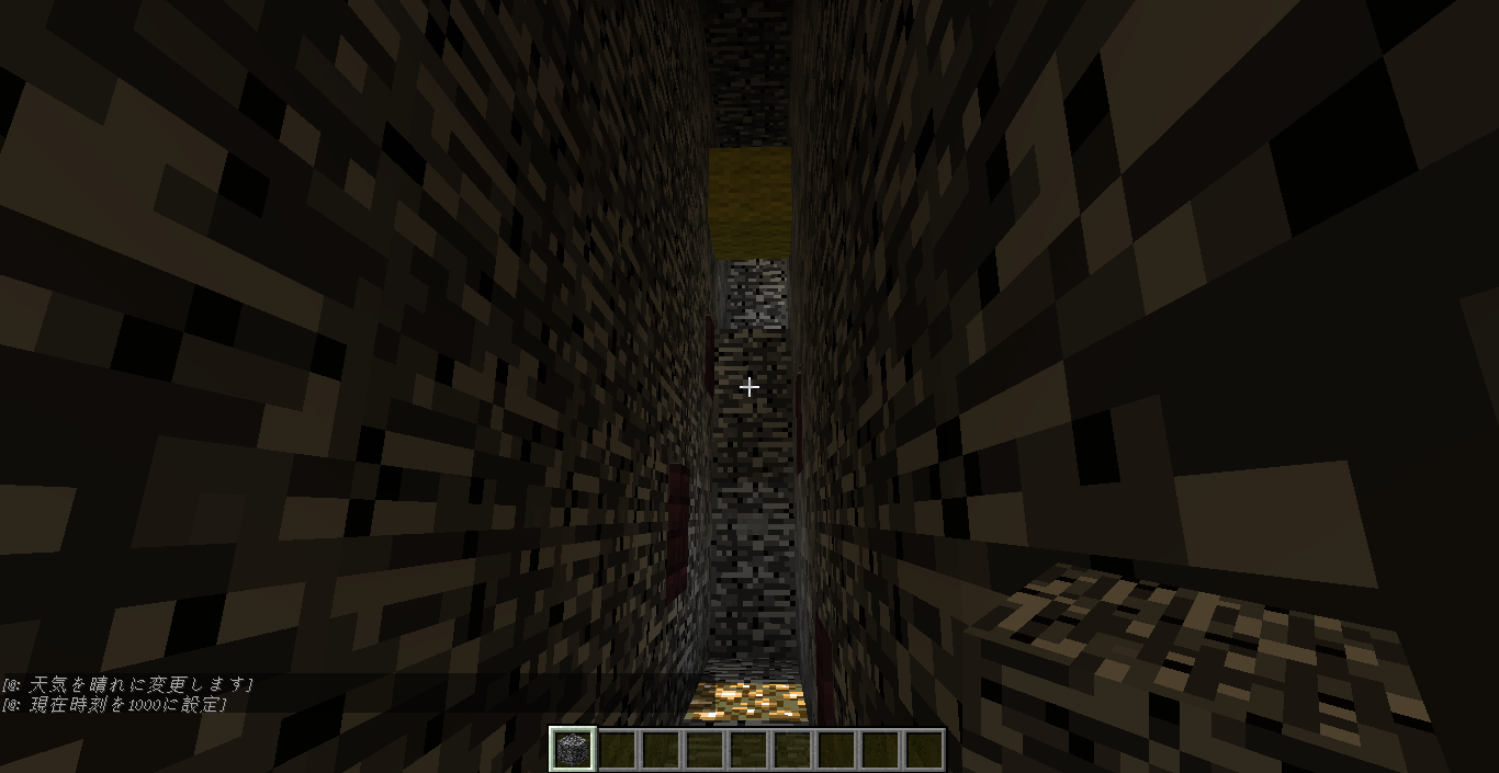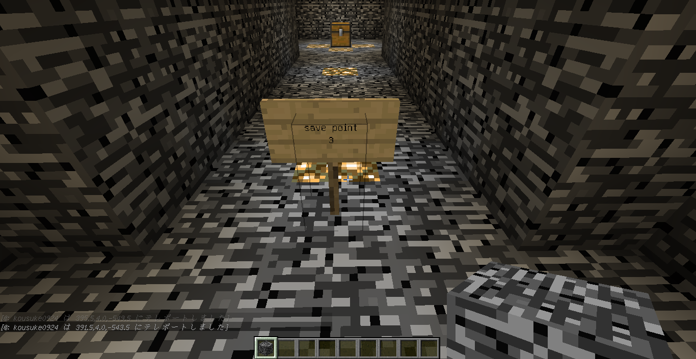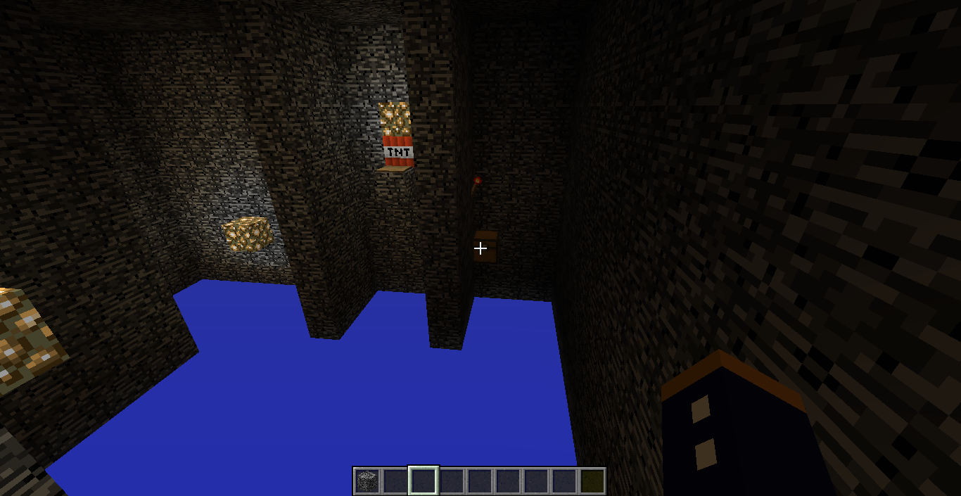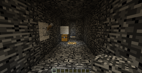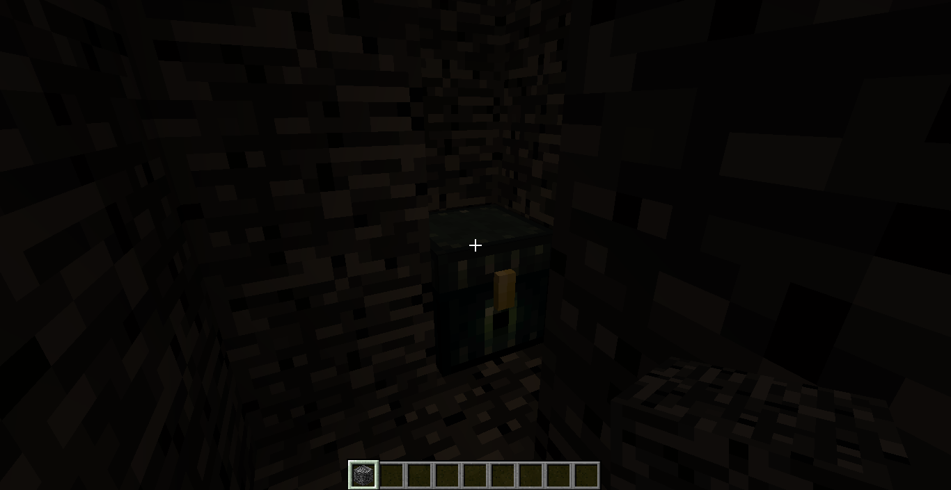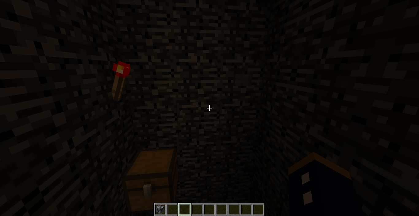 また、2つ目のTNT足場の次に一旦この暗い空間の左端に飛ぶと、隠しチェストに降りたてます。