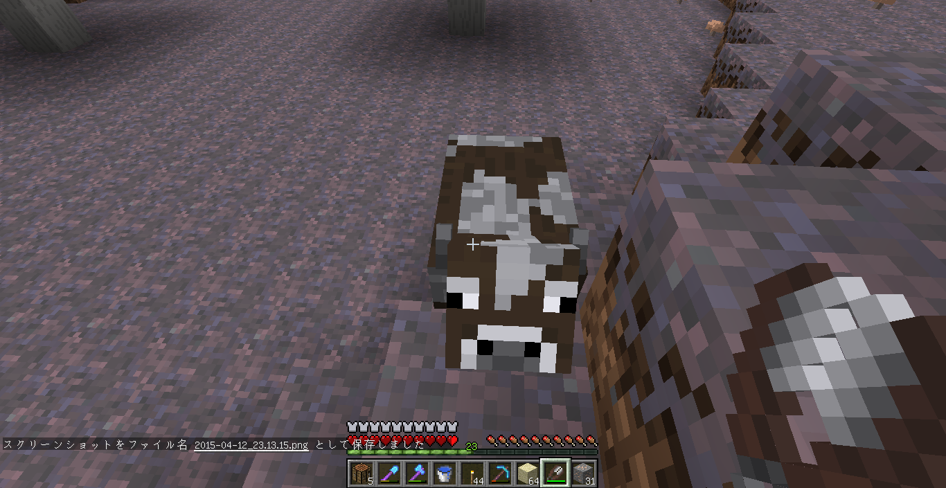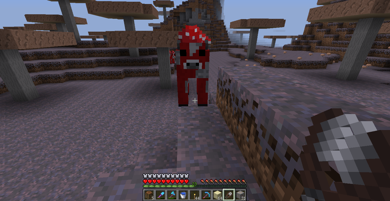 あと、ムーシュルームにハサミを使うと赤キノコをドロップして普通の牛に戻るという情報を耳にしていたのでやってみることに。