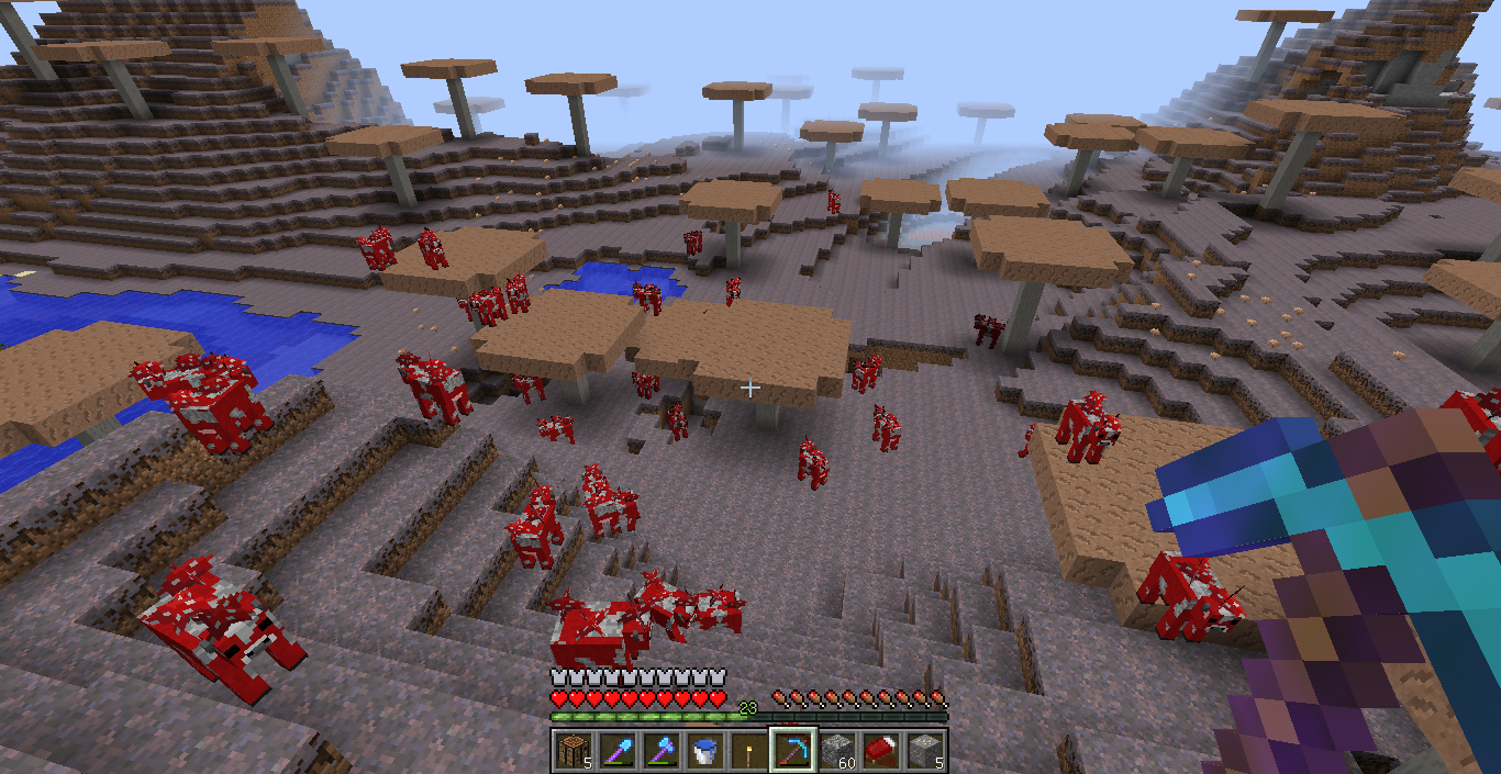 ただキノコバイオームって海洋にポツンと島としてのみしか生成されないと聞いていたので陸続きでキノコバイオームがあることに驚いています。