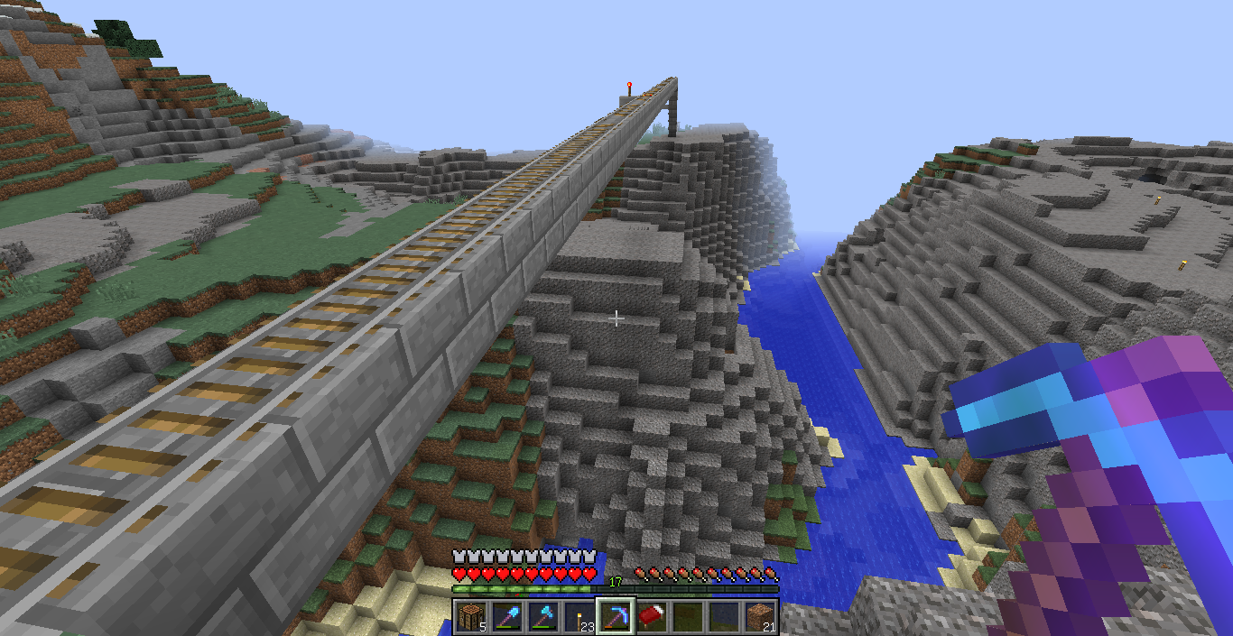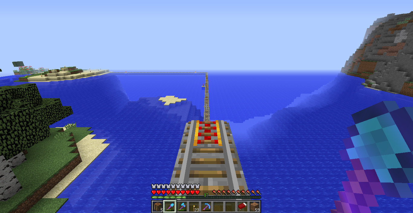 海では地上に上がるmobが湧かないことと、建設中に海に落ちたら復帰が大変なので海のエリアだけは海面と同じ標高に線路を敷きます。