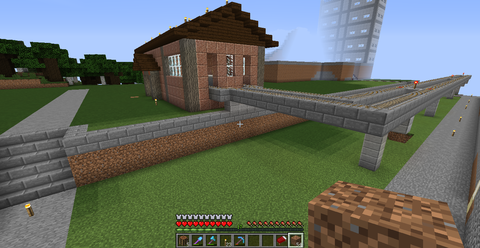 少し前に自作した村『west village』に行く線路も敷く予定なので、そこまでは複線で繋ぎ、その先は単線にします。