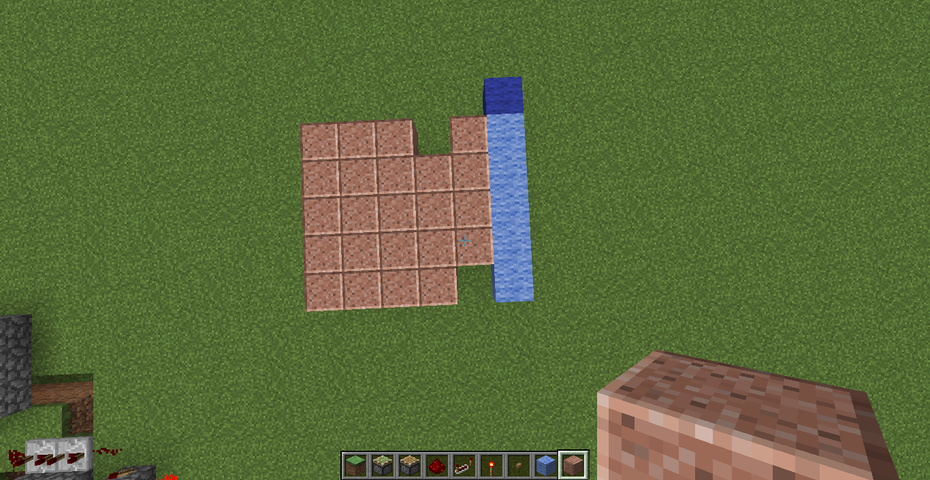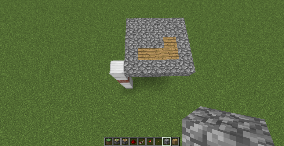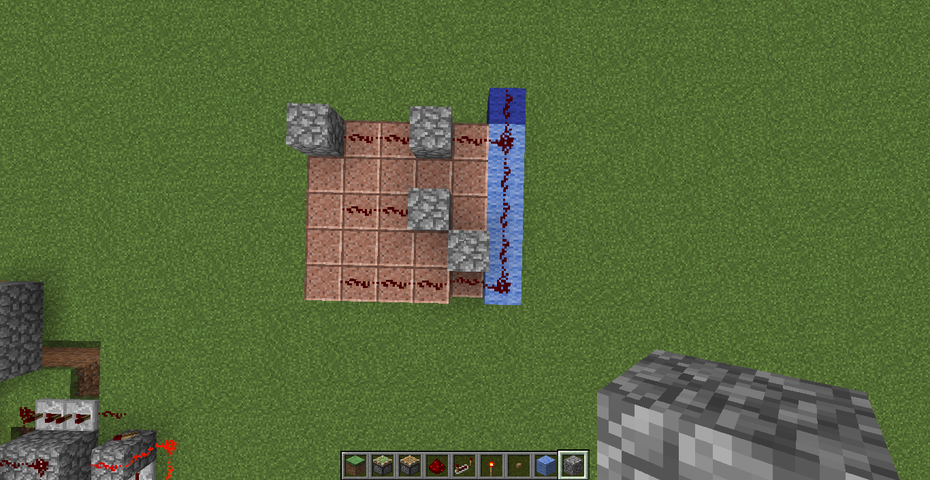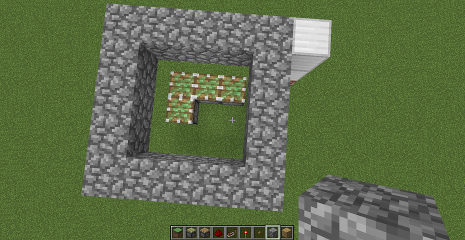 今回の回路は、3×1+1マスの計4マスが沈んで通路ができるタイプですので、地上にはそこまでスペースは必要ありません。