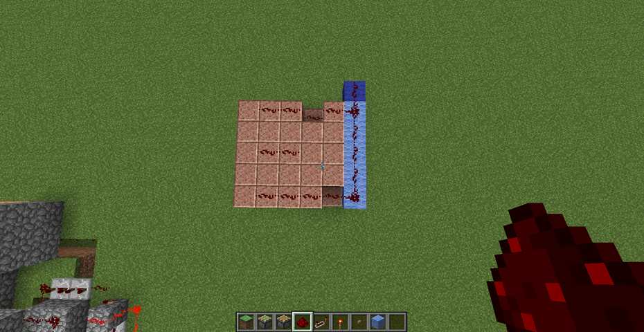 10.次に、この位置に赤石ブロックを設置します。