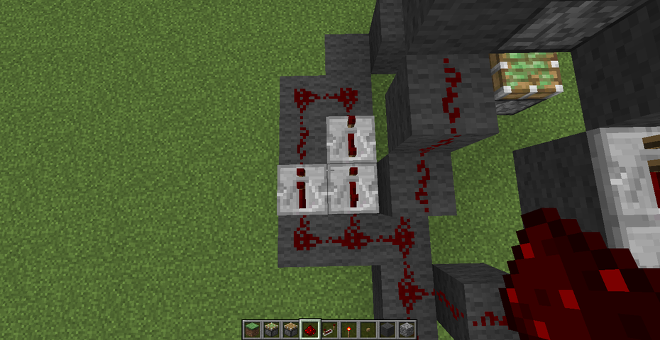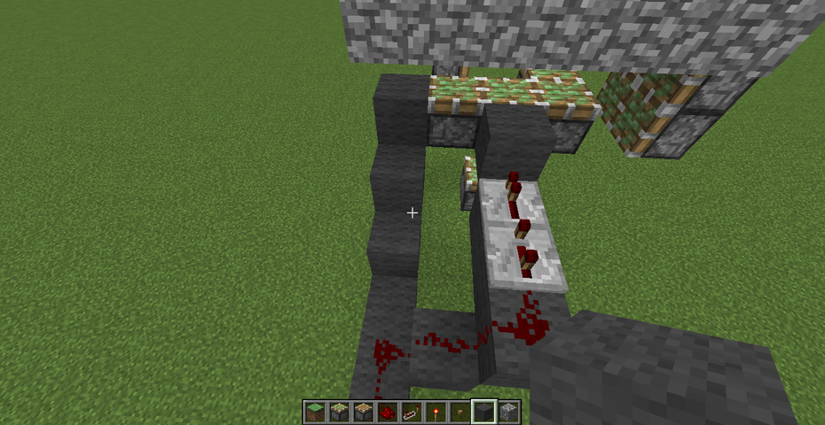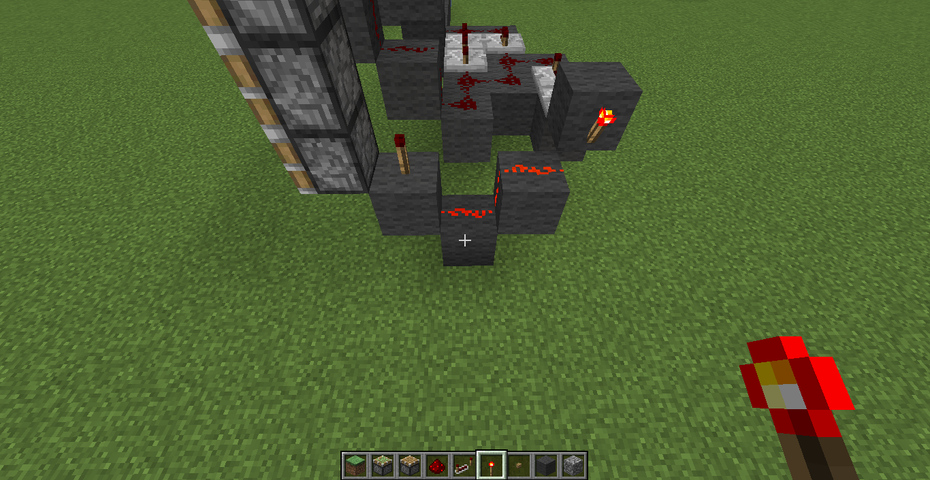 そしてこのように回路を敷きます。赤石トーチを忘れずに。