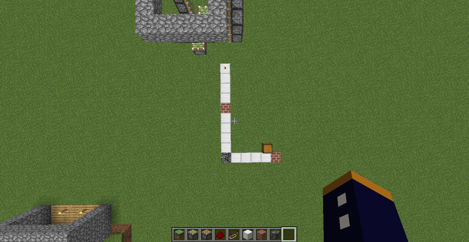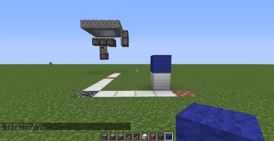 この青い羊毛のブロックが今回の回路の基準点となります。