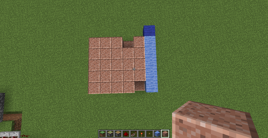 2ヶ所穴が空いている部分がありますが、この部分は1マス下にブロックを設置して、1マス分の窪みができている状態にします。