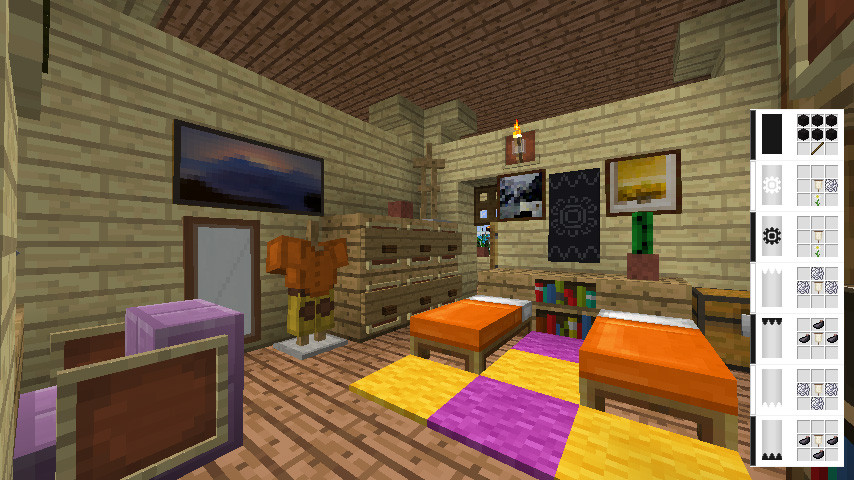 2階の廊下部分。窓の関係で壁の位置が限られたせいで、とても中途半端なスペースになってしまったので、ピアノやら一族に伝わる防具などを置いてみました。