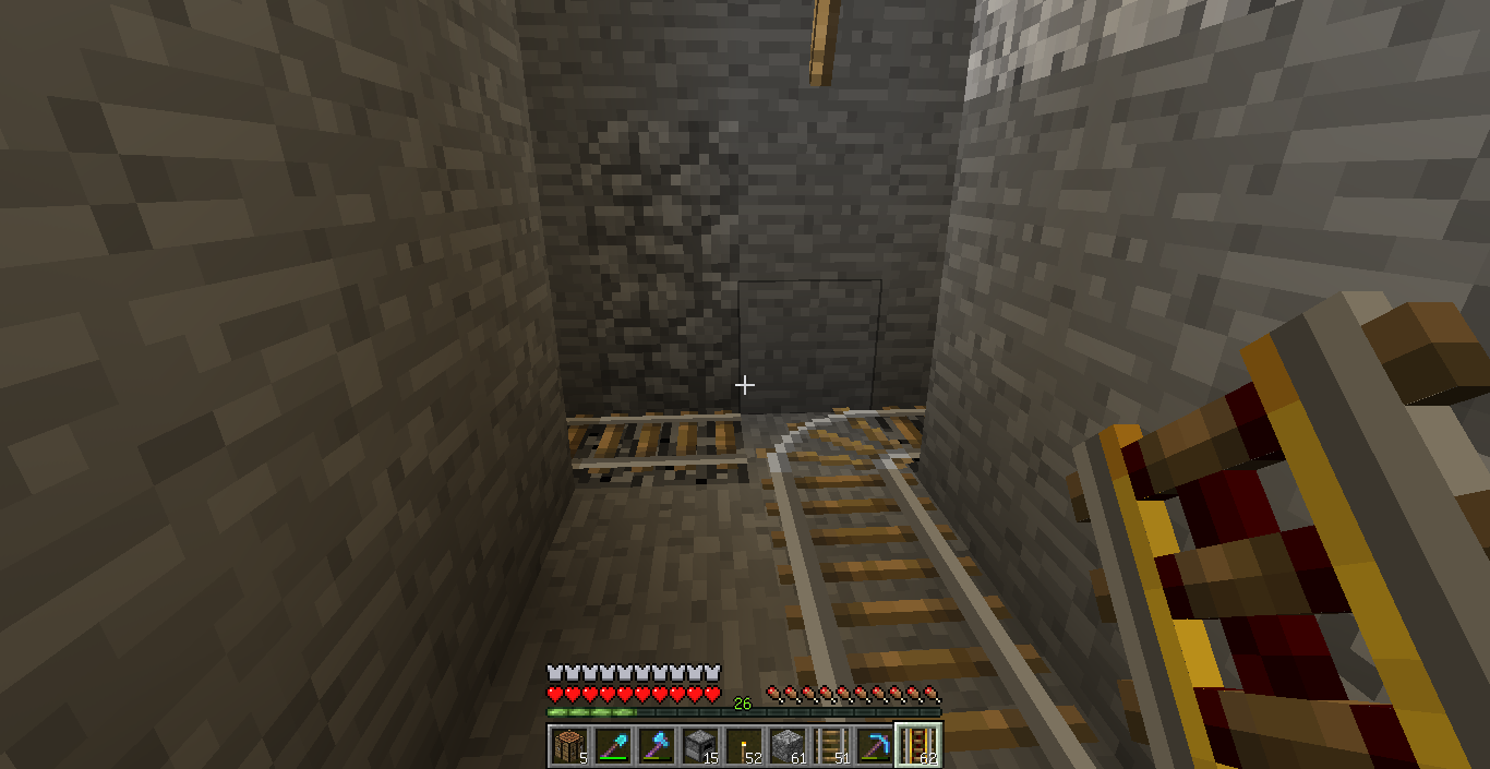 その輸送ラインでは、地下で掘った石をチェストトロッコを使って地上に運んだり、また自身を地下から地上へも運べるようにします。