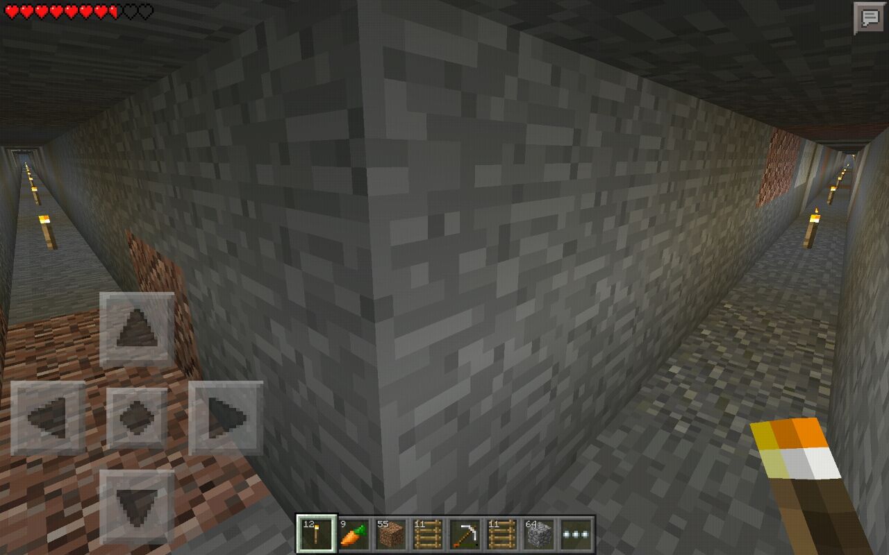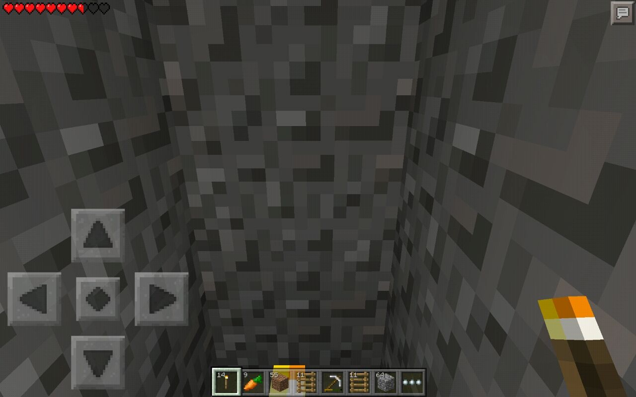 まずは岩盤まで掘り、岩盤から12ブロック上を掘っていきます〜